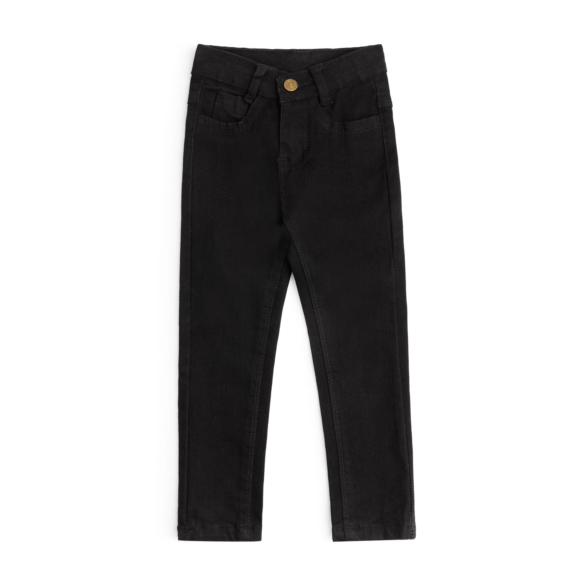 Crafted for durability and style, these black denim pants for boys offer a comfortable fit with a classic look. Designed to withstand active play, they combine sturdy fabric with expert tailoring, making them ideal for everyday wear. Their versatile color pairs easily with various tops, ensuring a practical yet fashionable addition to any young wardrobe.