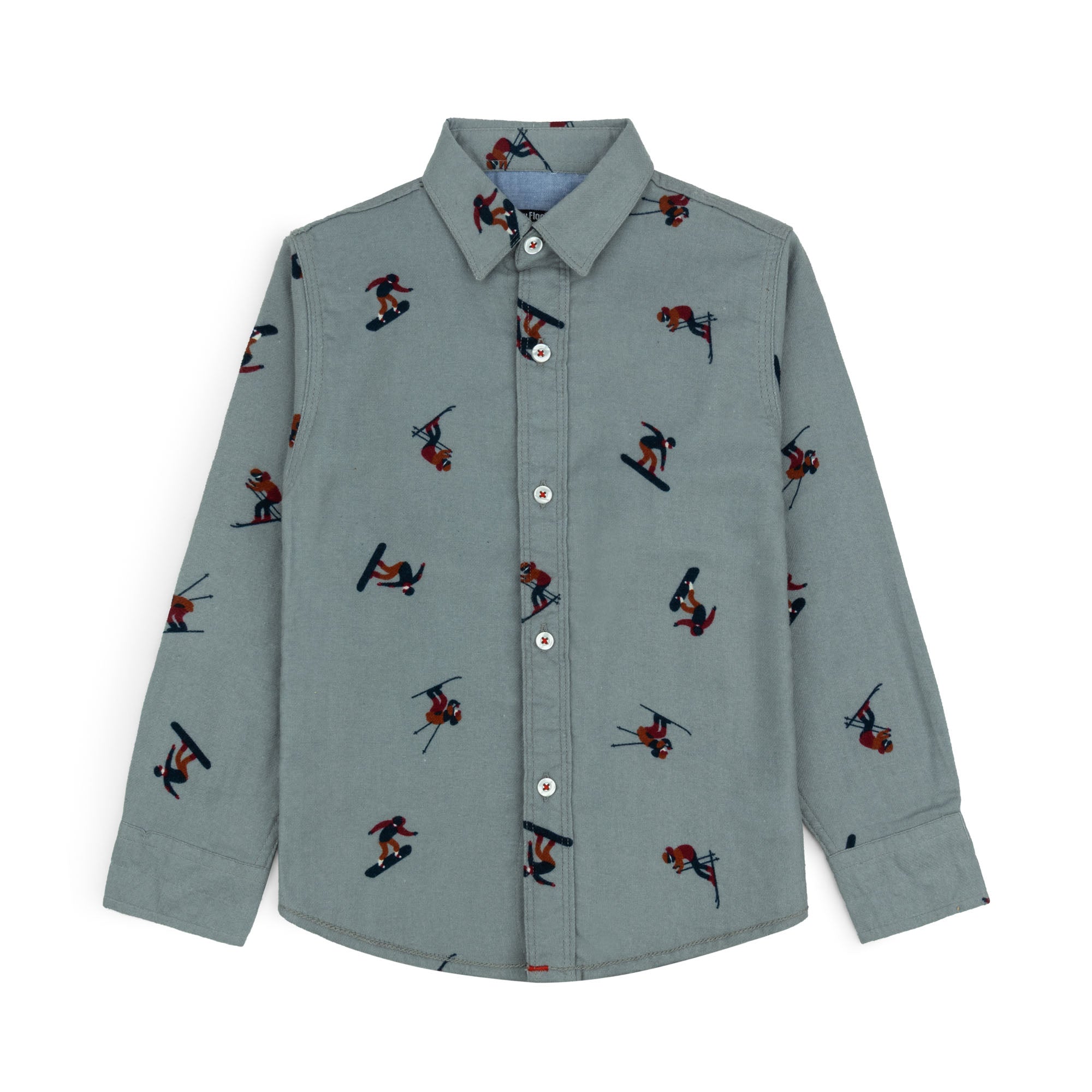 This grey casual shirt for boys features a skiing graphic design, blending sporty style with everyday comfort. Crafted for casual wear, it provides ease of movement while showcasing a playful winter sport theme. Ideal for adding a dynamic look to any boy’s wardrobe.