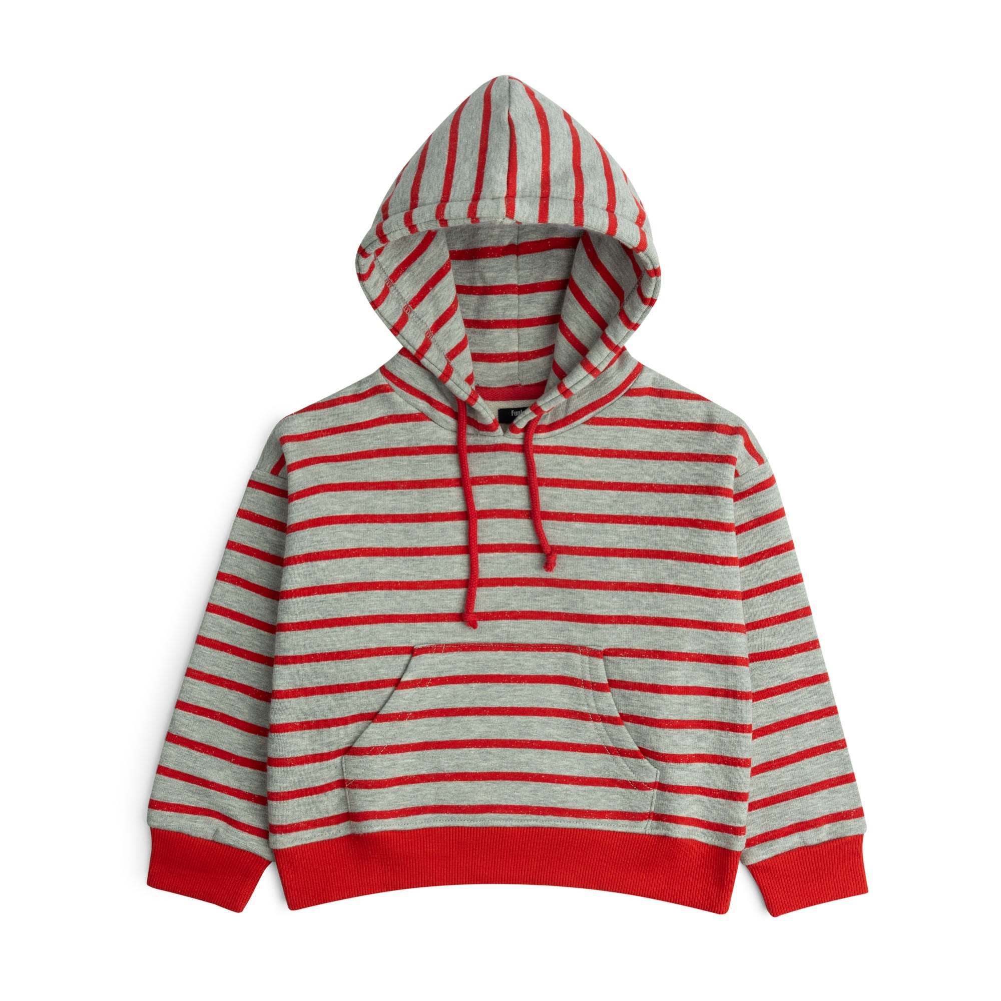 This boys' pullover hoodie features a classic striped pattern in light grey and red, offering both style and comfort. Crafted with soft, breathable fabric, it provides warmth suitable for cooler days while ensuring ease of movement. The pullover design makes it easy to wear, making it an ideal choice for everyday casual wear or outdoor play. Durable stitching ensures long-lasting use, combining practical function with a timeless look.