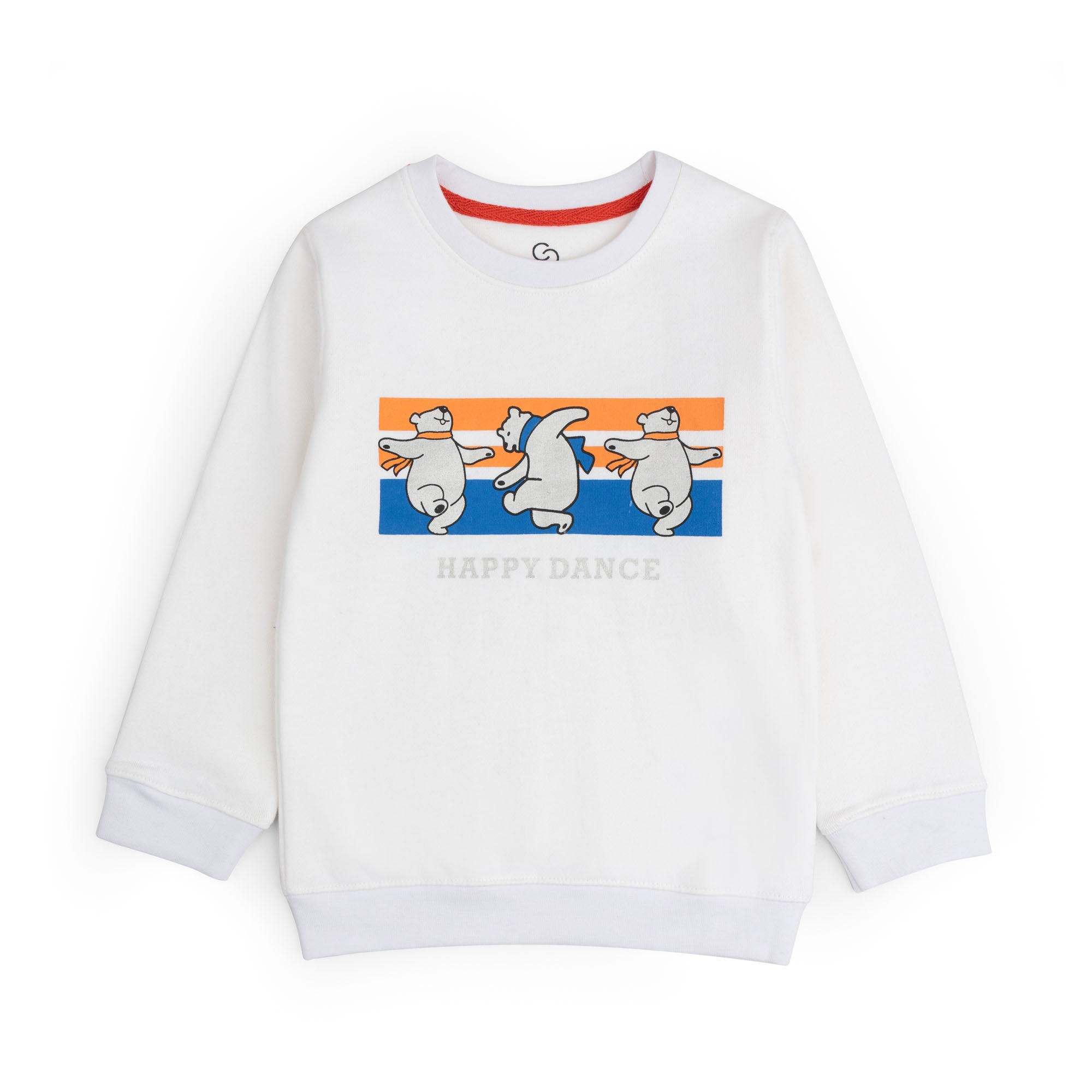 Celebrate childhood joy with this vibrant boys sweatshirt featuring the playful "Happy Dance" design. Crafted in crisp white, this piece combines comfort with expressive style, perfect for active kids who love to move and play. The durable fabric withstands everyday wear and frequent washing, while the relaxed fit allows unrestricted movement. An ideal choice for casual outings, school days, or spontaneous adventures. Let your child's personality shine through with this cheerful wardrobe essential.