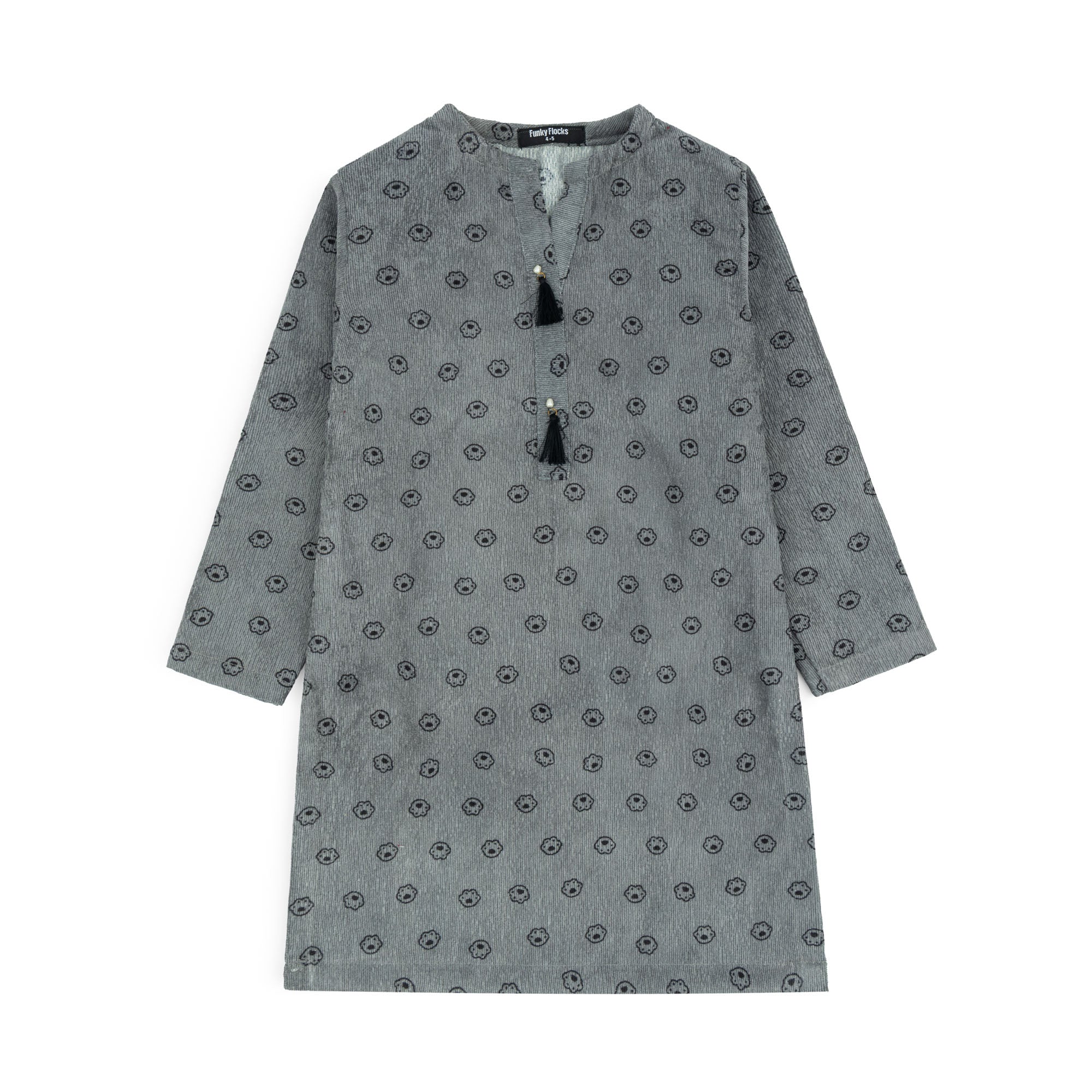 The Girl's Courtrai Kurta Tassel in grey offers a refined blend of traditional design and contemporary style. Crafted with attention to detail, its lightweight fabric ensures comfort throughout the day, while decorative tassels add a subtle touch of elegance. This kurta is ideal for both casual wear and special occasions, providing a versatile wardrobe staple for young girls.