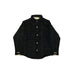 Blue silk tuxedo with marbled aquatic pattern and dark lining. Sleeves are complete with rounded hem and black buttons.