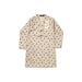 Blue silk tuxedo with marbled aquatic pattern and dark lining. Sleeves are complete with rounded hem and black buttons.