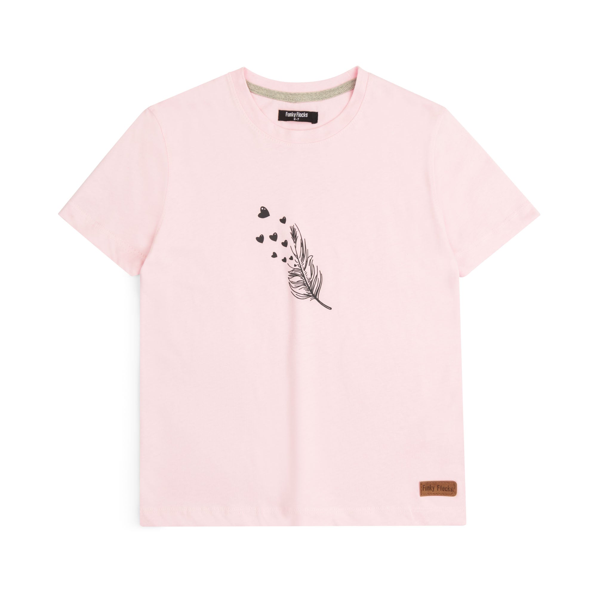 This pink T-shirt showcases a charming heart design, combining comfort with a touch of playful style. Crafted for everyday wear, it offers a soft feel and a flattering fit, making it an ideal choice for those seeking both casual elegance and expressive detail in their wardrobe.