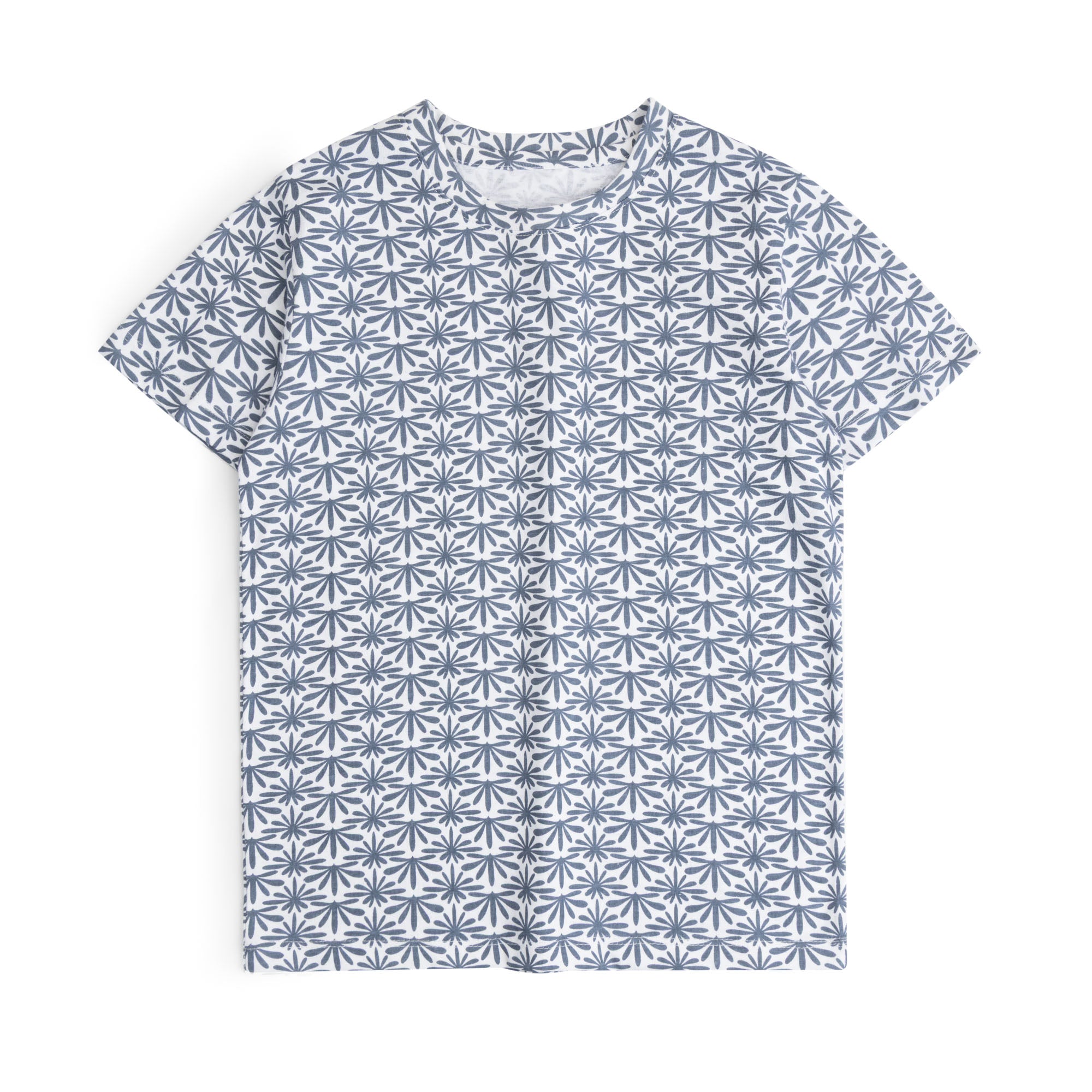 This white T-shirt features a distinctive grey patch detail, combining classic simplicity with a modern touch. Crafted for comfort and style, it offers a versatile addition to any wardrobe, suitable for both casual and smart-casual occasions. The subtle contrast enhances its visual appeal while maintaining a clean, refined look.